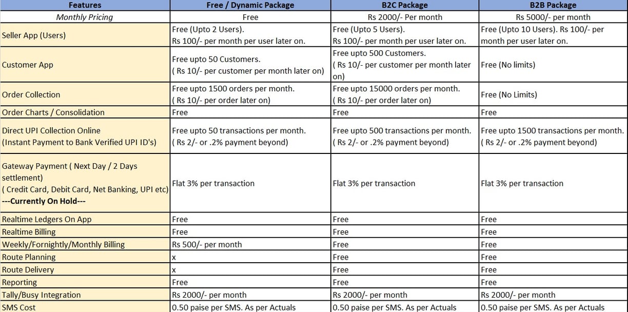 We intend to keep the Gokrishi Apps Free for small sellers. We have a dynamic pricing plan as mentioned below as we will only charge as per usage by sellers. Customer Application will always be free. Normal sellers will be able to sell and collect payments for free in Free/Dynamic package.